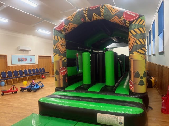 Ready to turn up the excitement? Book the Slide and Obstacle package 2 now for a MASSIVE £90 saving and give your guests a thrilling, weaving, racing experience full of enjoyment — and a few happily tired kids by the end. 🚀 Contact us to reserve your date and ensure a party that keeps everyone shouting “AGAIN!” Graffiti can be replaced by the toxic for no further costs.